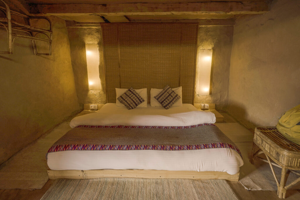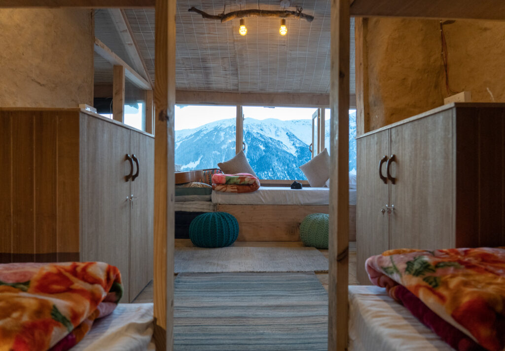 - 10 days / 9 nights of accommodation in shared earthen dorm