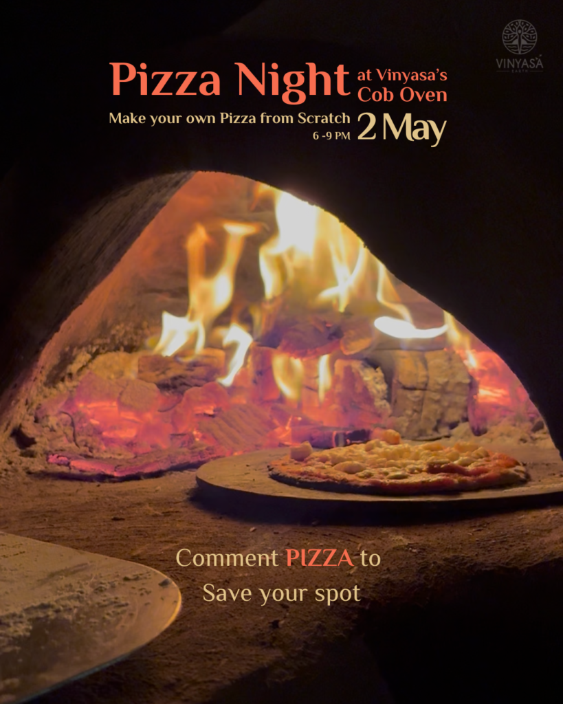 We’re hosting a small, fun gathering at Vinyasa Earth where you get to make your own pizza from scratch β€” from kneading the dough to adding your toppings and baking it over fire.